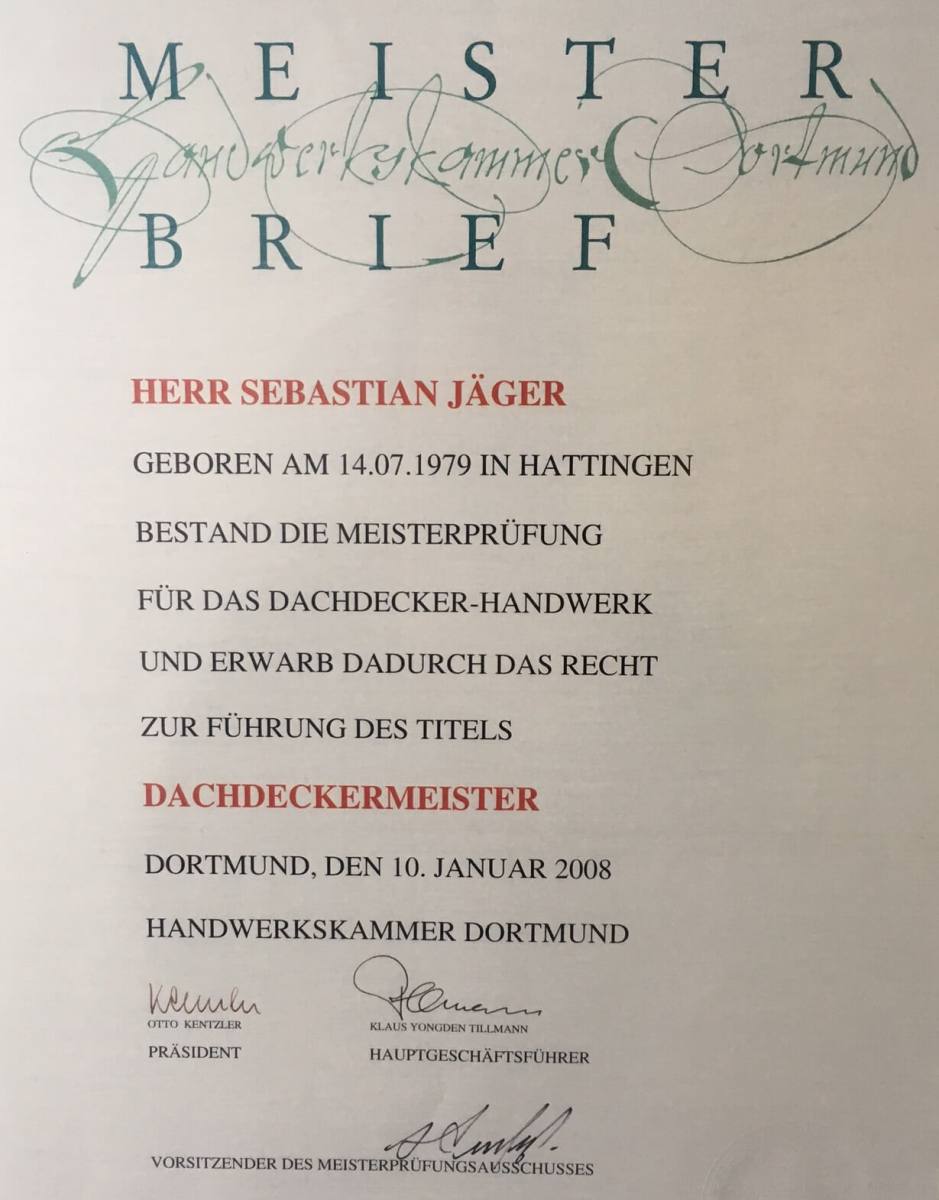 | 2008 | Meisterbrief Sebastian Jäger | |