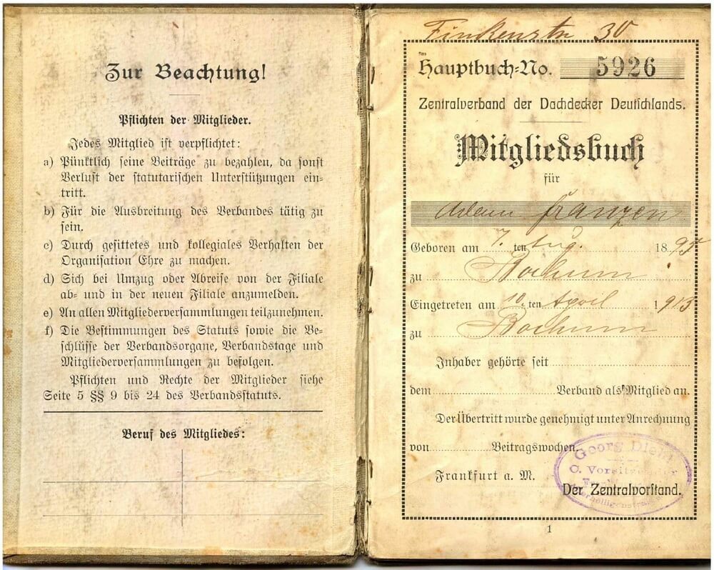 | 1925 | Dachdeckermeister Heinrich Passerah ist in der Firma | |